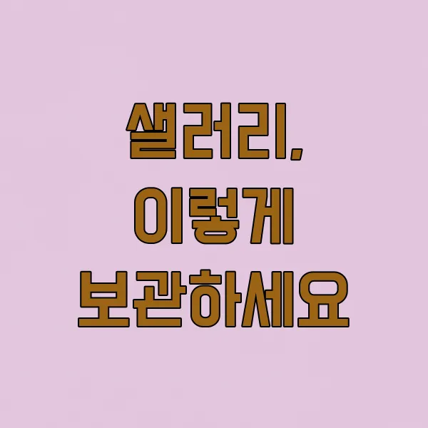 샐러리를 오래 신선하게 보관하려면 키친타월로 줄기 부분을 감싸주는 것 이 좋아요. 이렇게 하면 수분이 과도하게 빠져나가는 것을 막아주고, 신선함을 더 오래 유지할 수 있답니다.